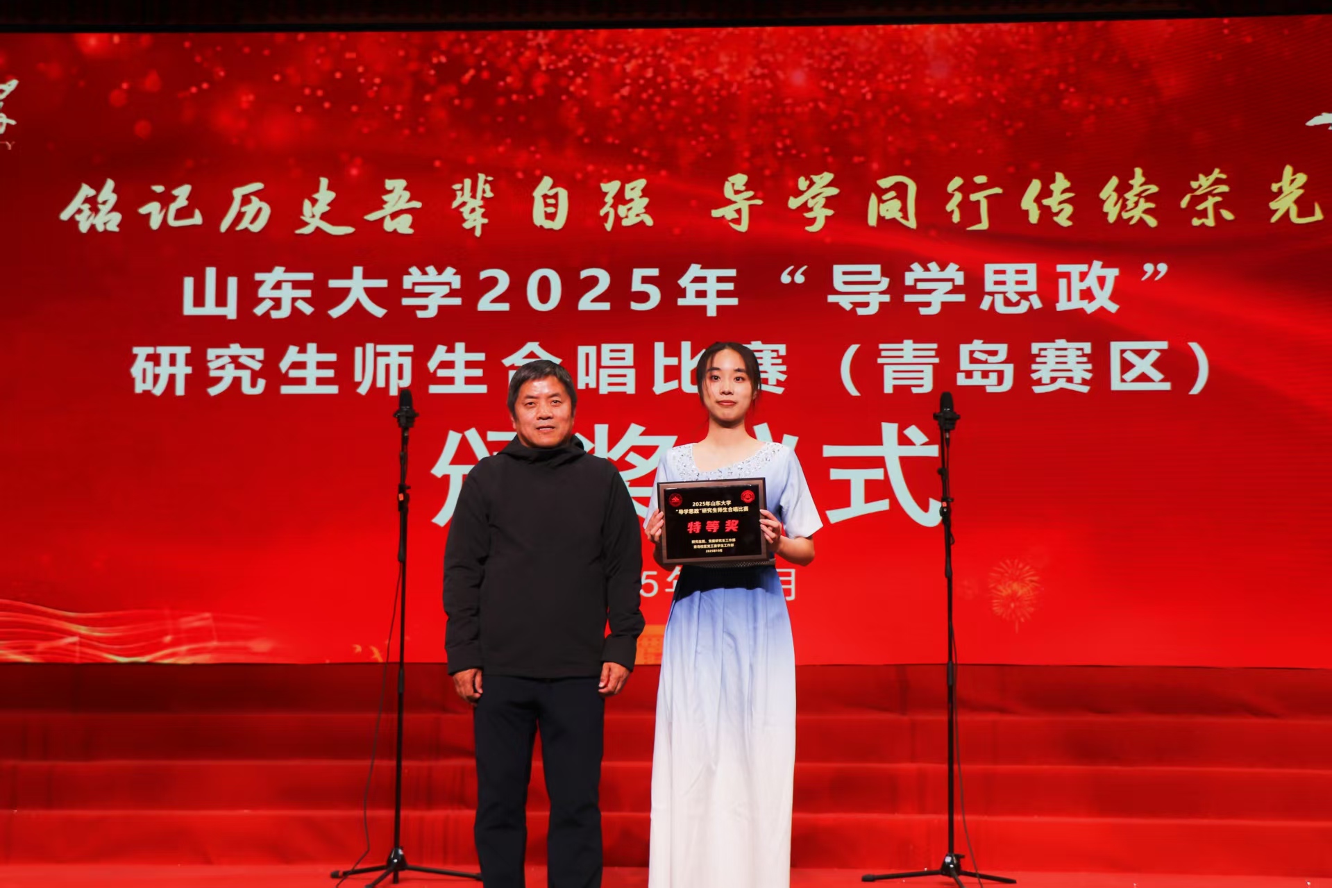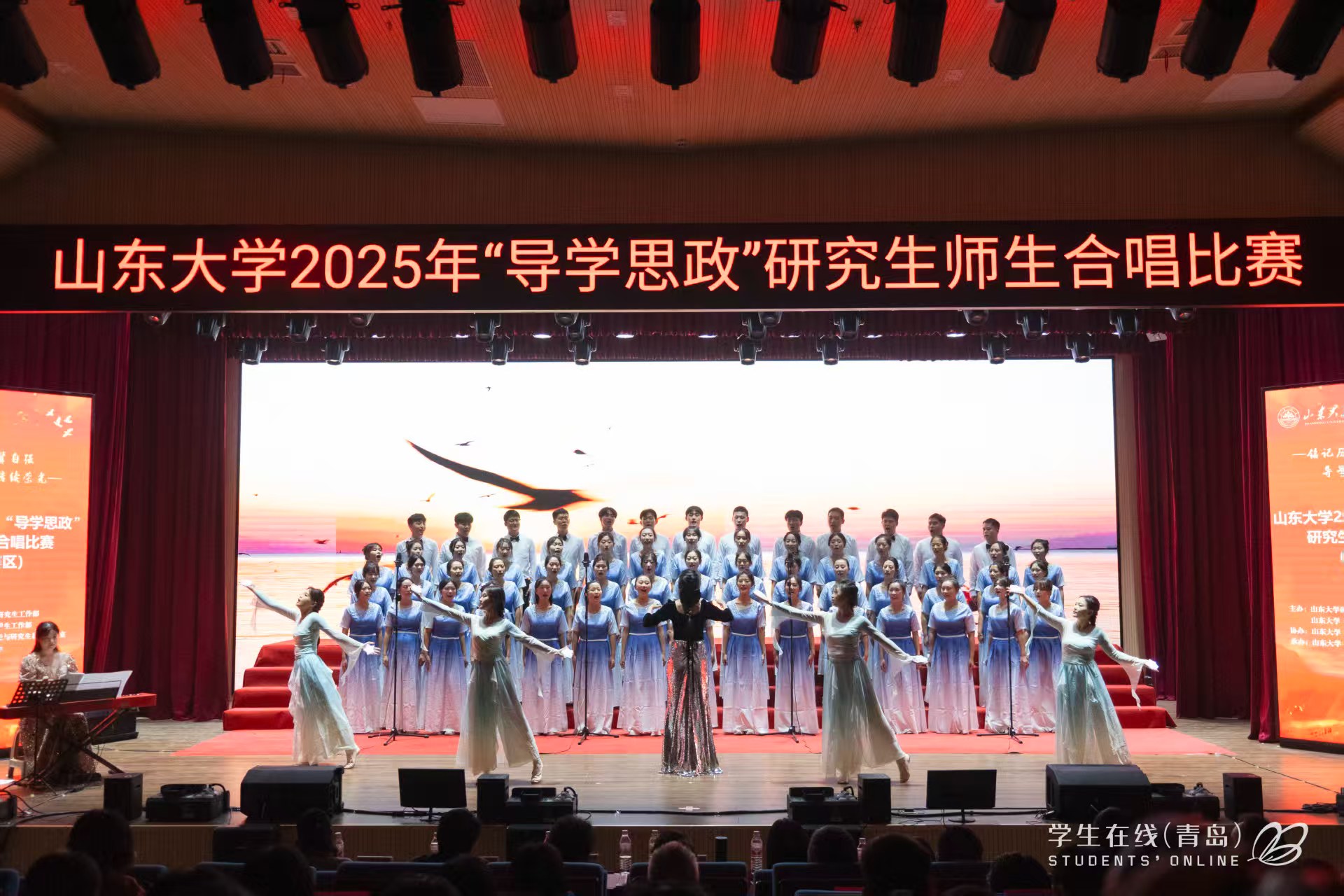 铭记历史吾辈自强,导学同行传续荣光。10月24日下午,山东大学2025年“导学思政”研究生师生合唱比赛(青岛赛区)在双创中心四楼报告厅举行。生命科学学院师生代表队凭借对歌曲《向光而行》的精彩演绎,在众多参赛队伍中脱颖而出,荣获本次比赛最高奖项“特等奖”,并一举斩获“最佳伴奏奖”。