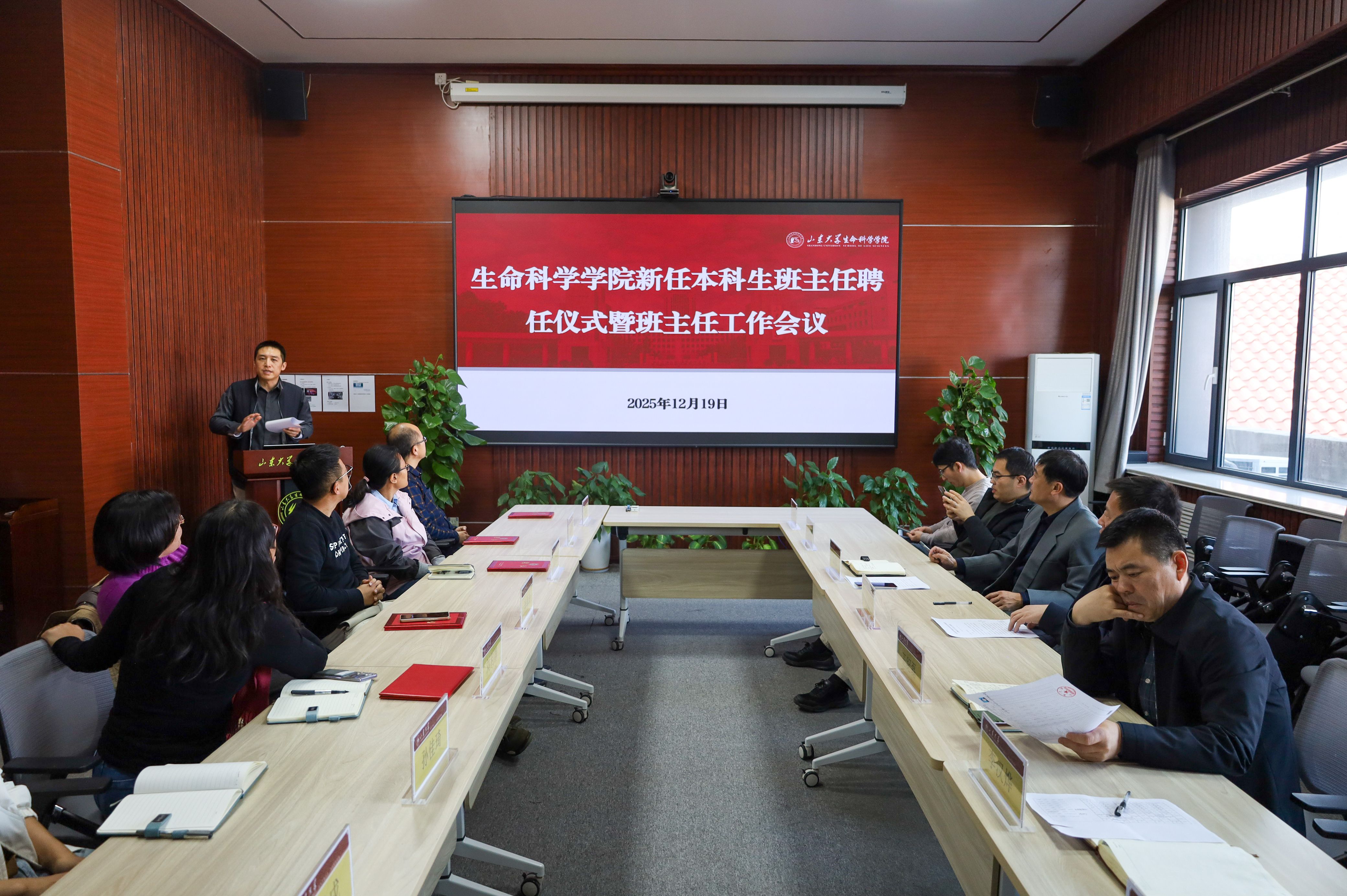 会上,李汉烨宣读了学院新任本科生班主任聘任名单。学院副院长张伟系统解读了《山东大学生命科学学院本科班主任管理办法(试行)》,围绕职责履行、培训支持、考核奖励三大核心模块,详细阐释了班主任在强化学生学业指导、统筹开展全方位关心关爱等方面的具体要求、实施路径与保障机制。