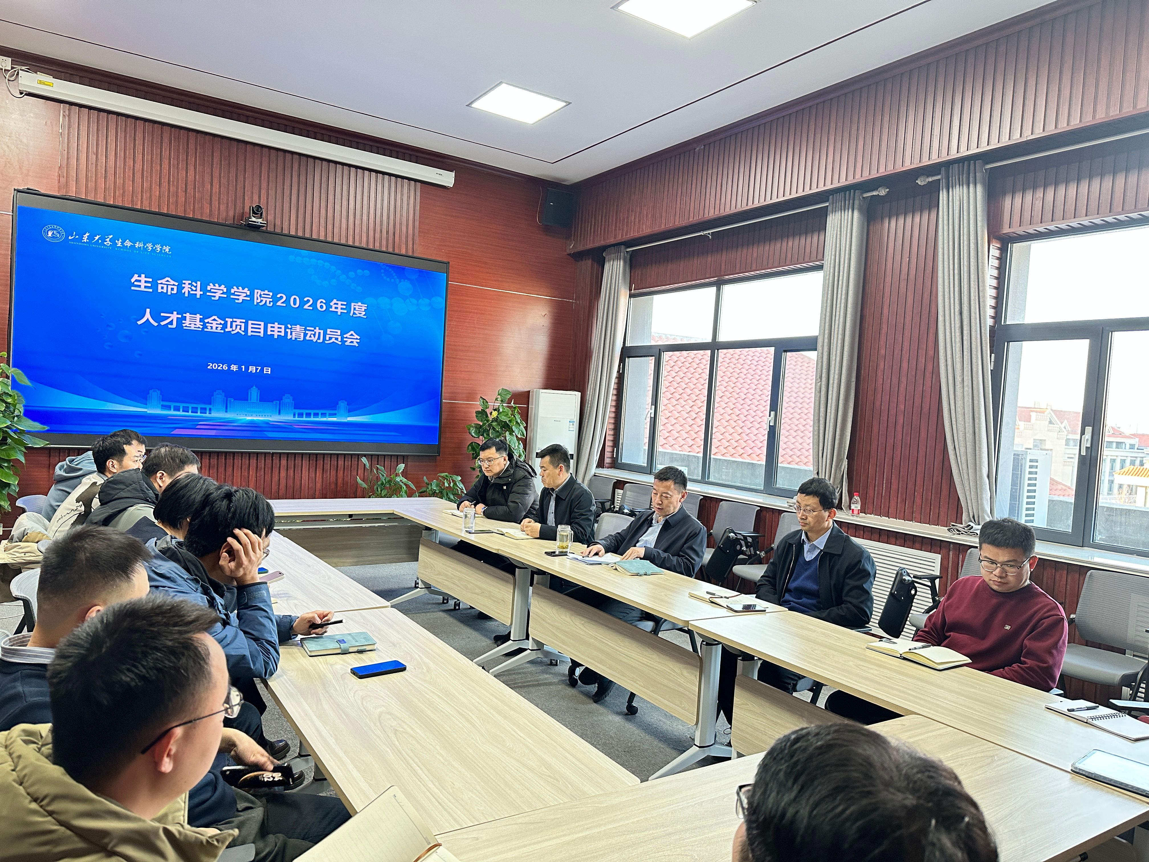 1月7日,山东大学生命科学学院召开2026年度人才与基金项目申报动员会,全面部署国家级科研项目与人才计划申报工作。院长刘峰,院党委书记王纪磊,副院长白明义、邵明出席会议,学院学科带头人、青年教师代表等18人参会。会议由刘峰主持。