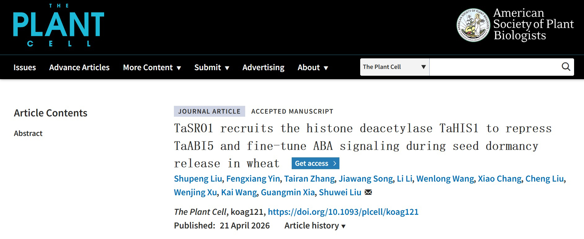 4月21日,山东大学生命科学学院刘树伟教授团队在国际知名植物学期刊《The Plant Cell》在线发表题为“TaSRO1 recruits the histone deacetylase TaHIS1 to repress TaABI5 and fine-tune ABA signaling during seed dormancy release in wheat”的研究论文。该研究首次揭示了TaSRO1 通过引导组蛋白去乙酰化酶TaHIS1定位至基因组特定位点,擦除组蛋白赖氨酸残基乙酰化修饰,从而调控小麦种子休眠相关基因表达的分子机制,填补了植物 SRO 家族蛋白介导基因转录抑制机制研究领域的空白。