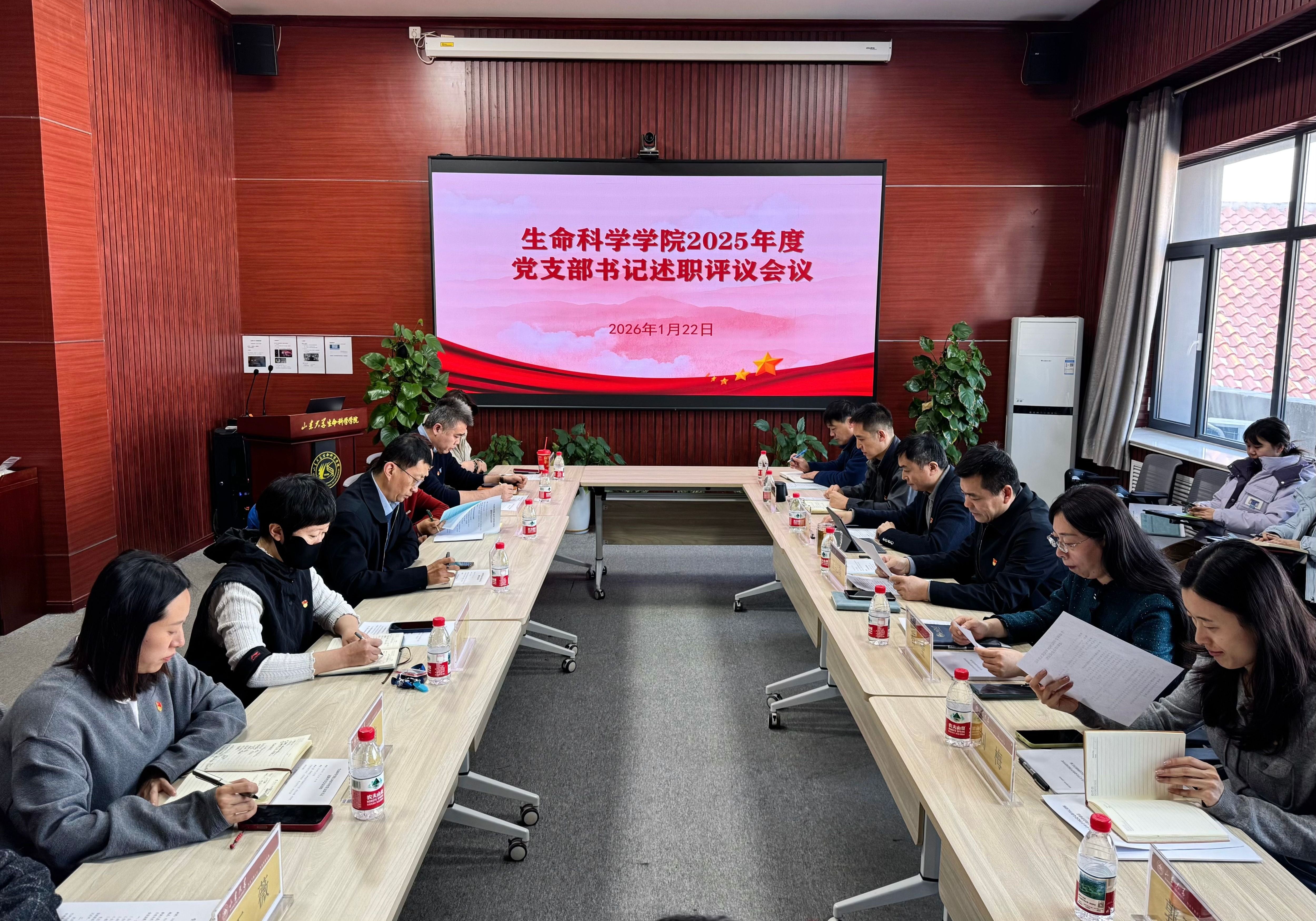1月22日下午,生命科学学院召开2025年度党支部书记述职评议会议。学校第九考核督导组副组长石莹、考核组组员刘梅到会指导。学院党委书记王纪磊主持会议,院党员领导班子成员、党委委员、党支部书记参加。