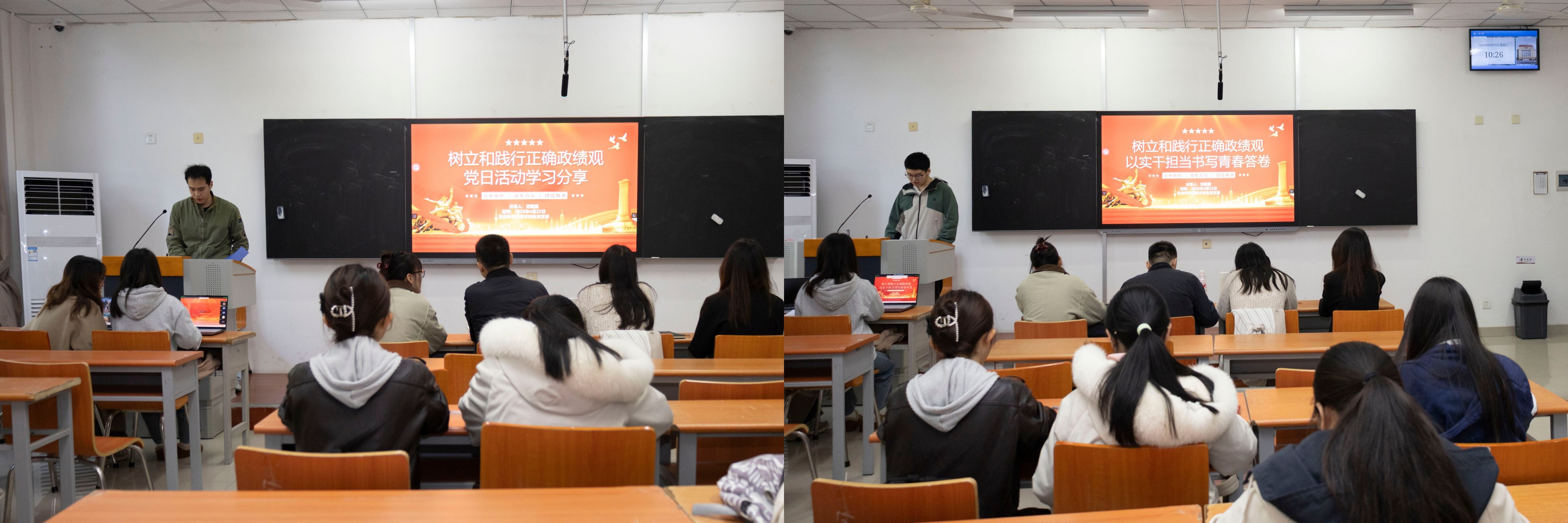 活动伊始,党支部紧扣时代脉搏与青年使命,开展了“树立和践行正确政绩观”主题党日活动。刘锡童通过翔实的PPT展示,系统分享了关于正确政绩观的核心要义与时代要求。王一鸣结合自身科研与学习实际,畅谈了学习感悟,体现了将宏大主题与个人成长相结合的深入思考。通过交流,与会党员进一步认清了新时代学生党员的历史责任,对于“扣好人生第一粒扣子”、端正价值取向有了更深刻的体会,有效强化了党性修养,为后续活动奠定了坚实的思想基础。